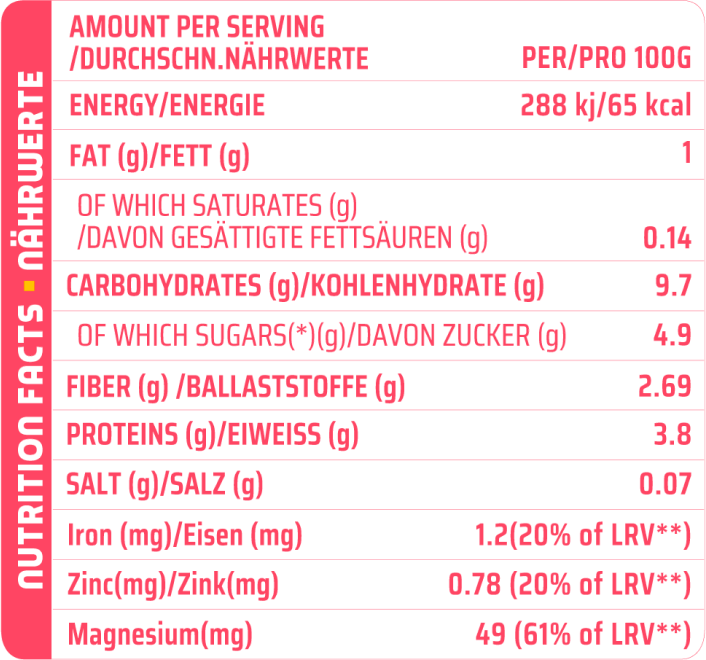 A delicious berries flavors containing organic quinoa, for fibre and complete protein, with a rainbow of gut-friendly veggies and fruit. No artificial sweeteners or added sugar. Less than 5g natural sugar. An excellent source of key nutrients such as iron, zinc, magnesium plus Omega 3 for brain development. A pouch that your baby will love.